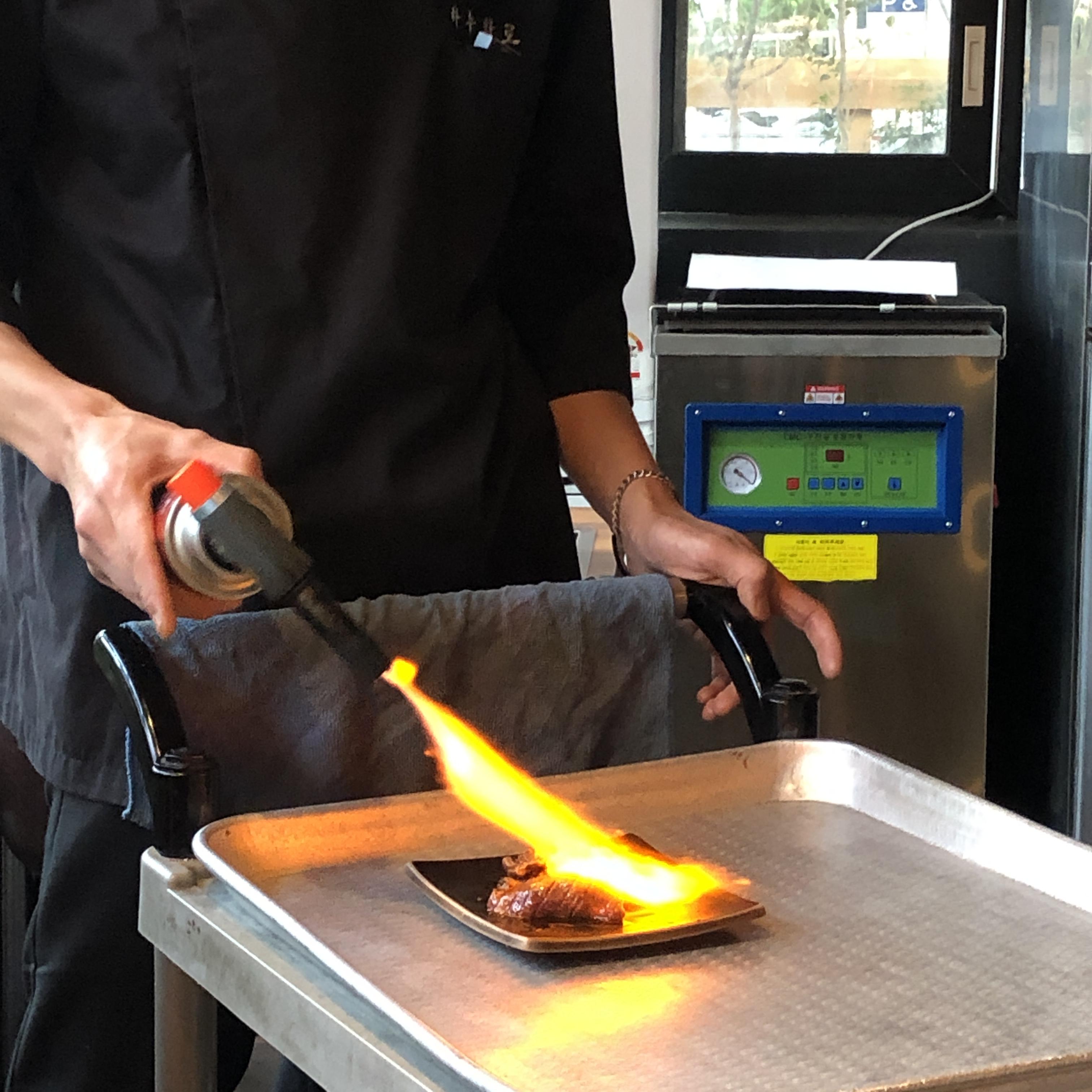 손님이 보는 앞에서 토치를 이용해